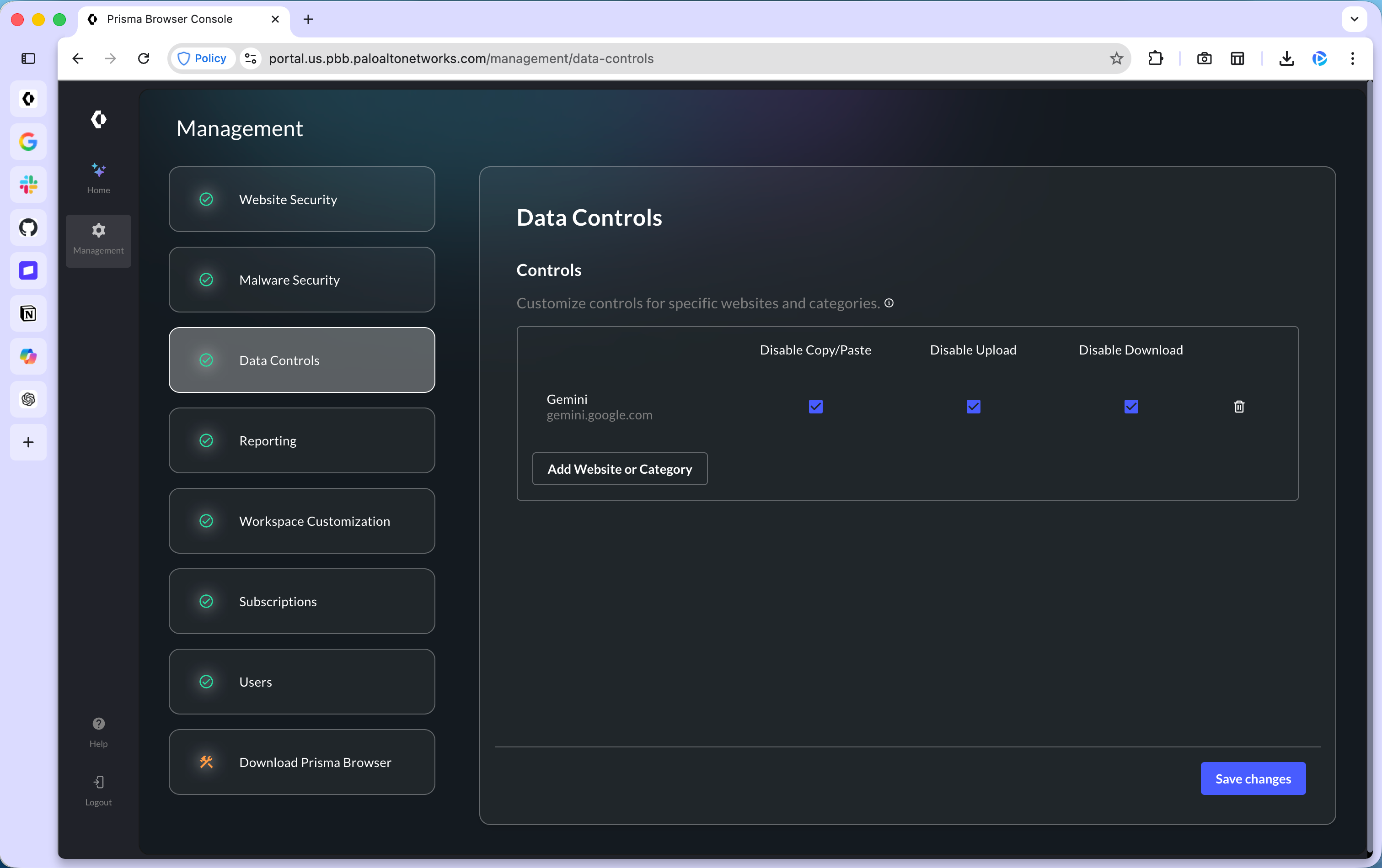 The Prisma Browser gives you a place to set those controls directly. You decide which sites can handle sensitive data and which actions, like copy/paste or uploads, are allowed or blocked.