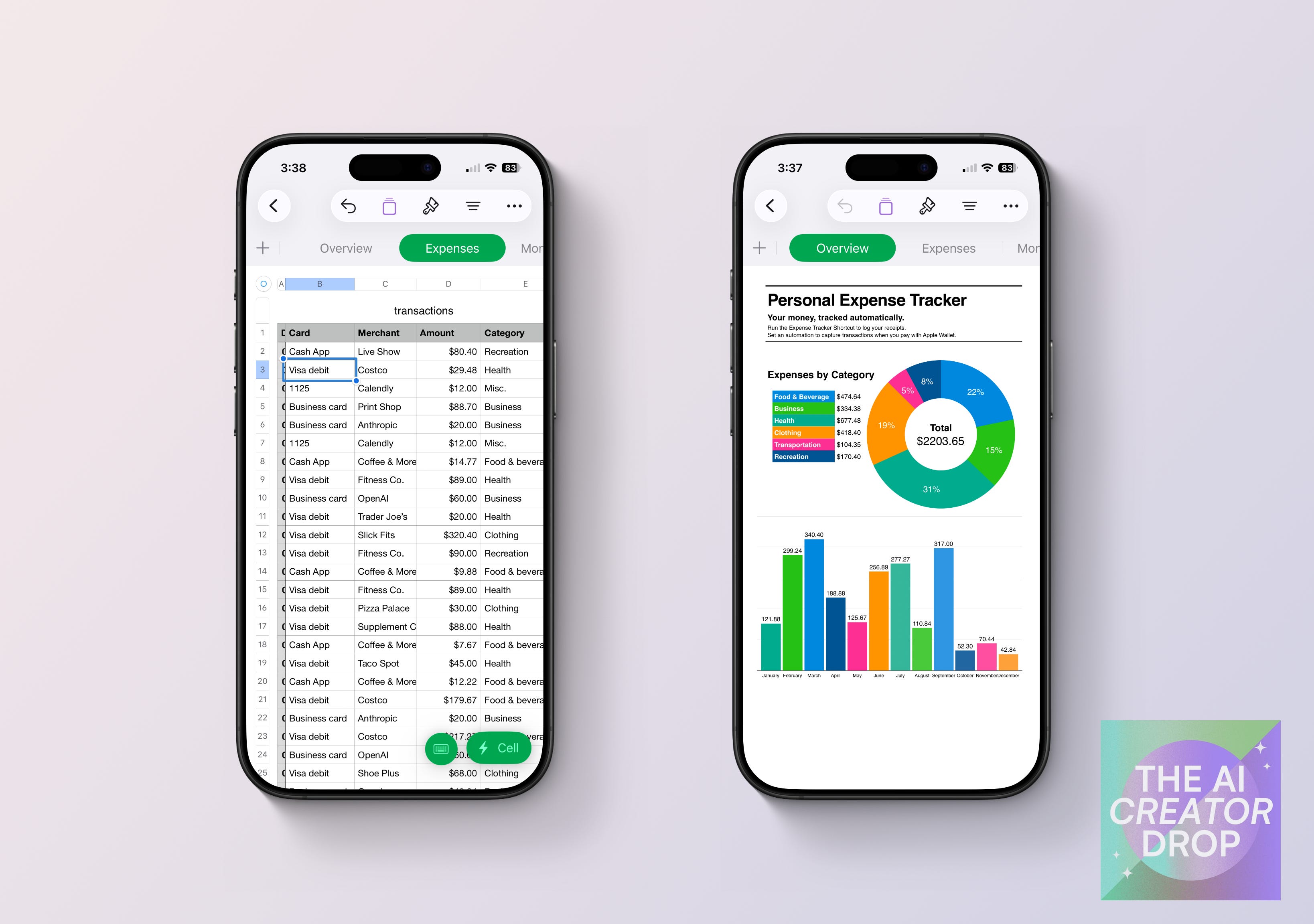 Meanwhile, your iPhone already knows what you bought. It’s processing payments through Apple Wallet. It already has a camera that can read receipts. It already has Apple Intelligence built in for on-device text analysis. And it already comes with access to Numbers, a full spreadsheet app, by Apple.