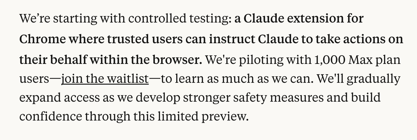 I was recently invited to be part of the 🔥🐜 FireAnts Claude Creator Program and got early access to try the new Chrome extension for Claude. The extension is capped at 1,000 testers and comes with Anthropic's very clear caveat: "Yes, you're welcome to share content about your access, but please note this is an experimental product with risks. Expect bugs."