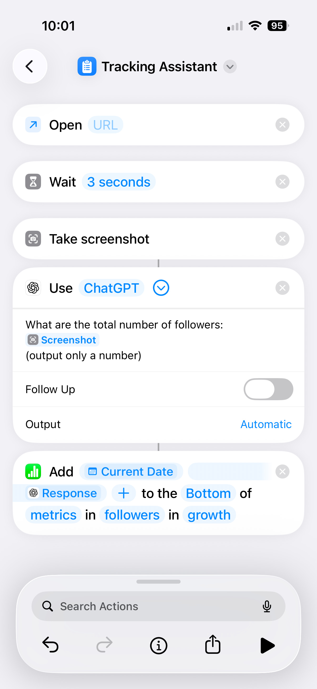 The Shortcut acts as your data collector. It’s the robot that visits each platform, grabs the number you care about, and hands it off to the next component.